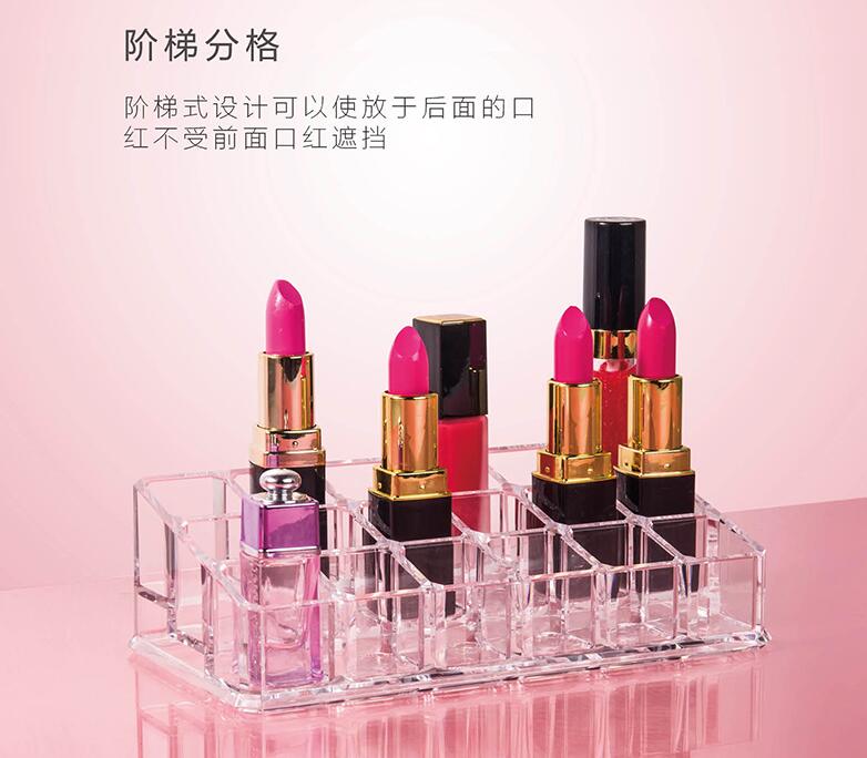 特點(diǎn):優(yōu)質(zhì)透明創(chuàng)意亞克力口紅展示架;亞克力口紅展示架 階梯式設(shè)計(jì);進(jìn)口材料,晶瑩剔透,時(shí)尚高檔;
